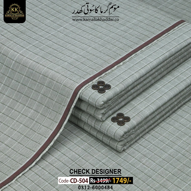 KAMALIA SUMMER CHECK DESIGNER KHADDAR  is a Non-Chemicalized Fabric Characterized By Luster, Durability, And An Intense Soft Feel For Human Skin.