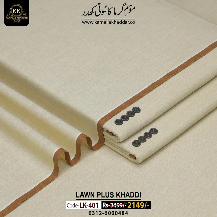 KAMALIA SUMMER LAWN PLUS KHADDI KHADDAR  is a Non-Chemicalized Fabric Characterized By Luster, Durability, And An Intense Soft Feel For Human Skin.
