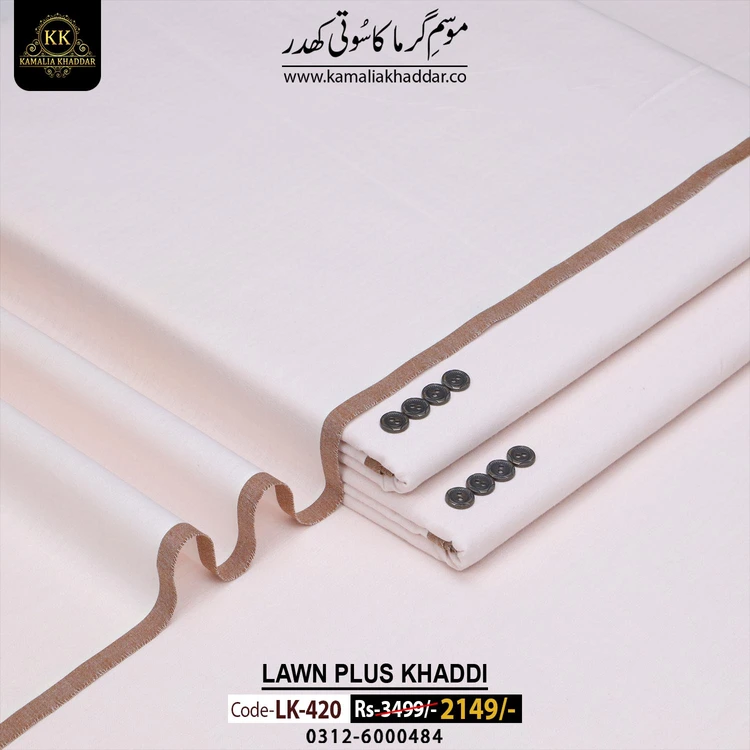 KAMALIA SUMMER LAWN PLUS KHADDI KHADDAR  is a Non-Chemicalized Fabric Characterized By Luster, Durability, And An Intense Soft Feel For Human Skin.
